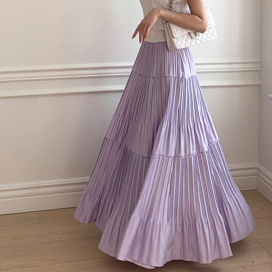【F01102】 早春韓國氣質高腰顯瘦不規則大擺百褶裙250106