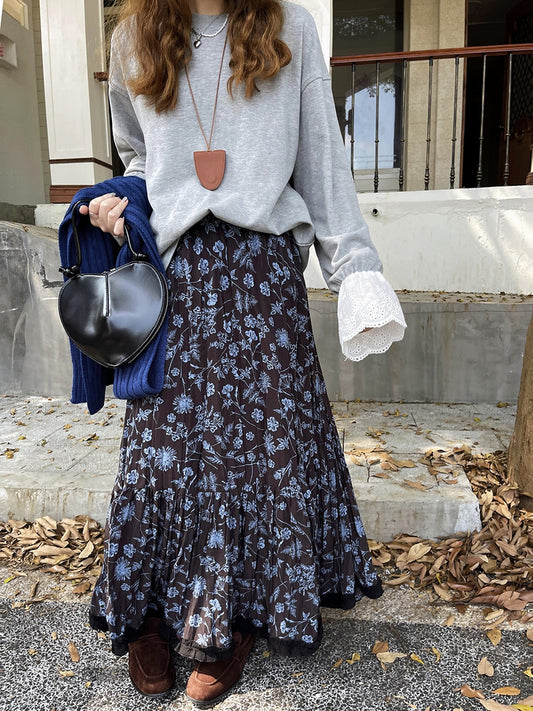 【F01111】早春韓系復古碎花氣質高腰顯瘦雪紡長裙250106