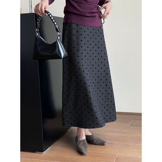 【cim2636】實拍秋冬氣質點點斜紋A字裙(後腰鬆緊)cim25早春