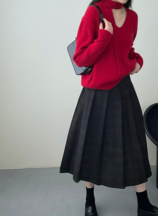 【cim2359】實拍秋冬經典復古格紋高腰A字裙241106