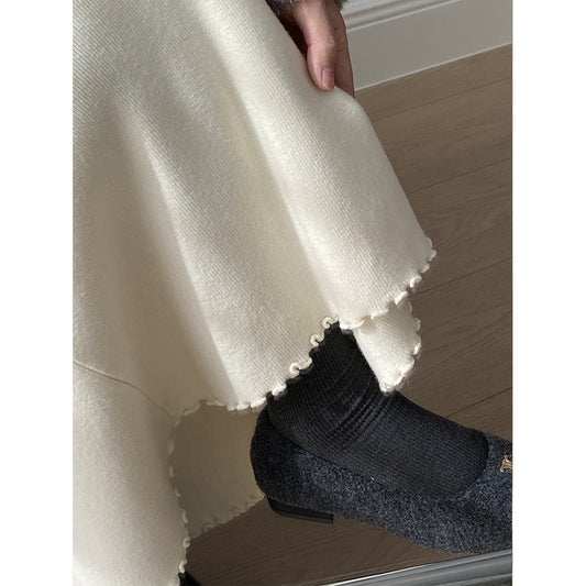 【Y28085】實拍清新感花邊針織A字裙後開叉不貼臀(含20%绵羊毛)241211