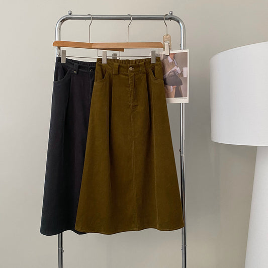 【cim2333】實拍高腰顯瘦燈芯絨A字傘裙(後鬆緊腰)241016