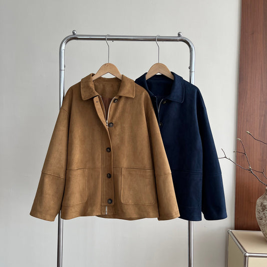 在台現貨【cim2607】實拍早春韓國麂皮絨翻領復古摩登外套