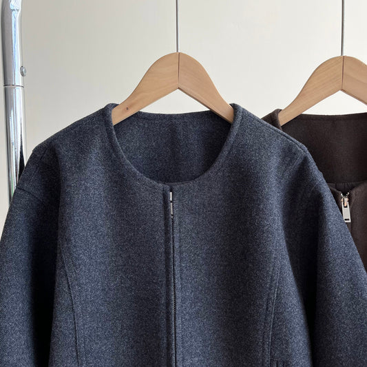 在台現貨【cim2638】實拍復古小香簡約圓領毛呢小外套241016