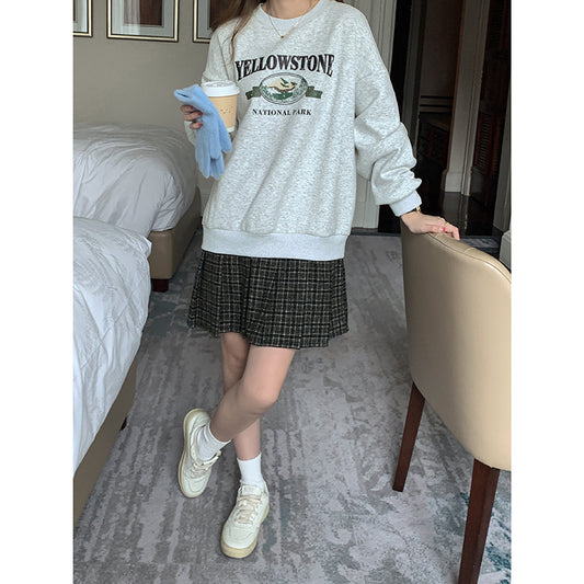在台現貨【N8240】實拍韓國秋冬寬鬆加絨衛衣拼接百褶洋裝