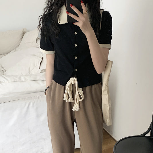 在台現貨【8497】實拍韓國Polo领氣質排扣短袖T恤
