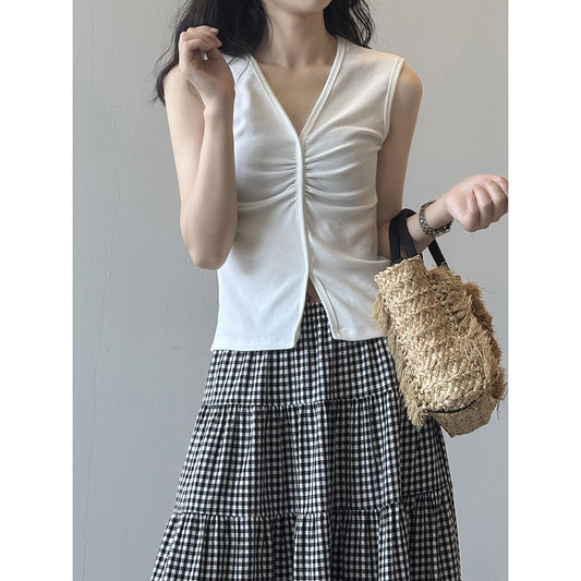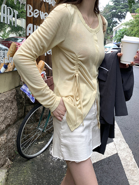 在台現貨【Y82531】實拍棉質褶皺針織T恤