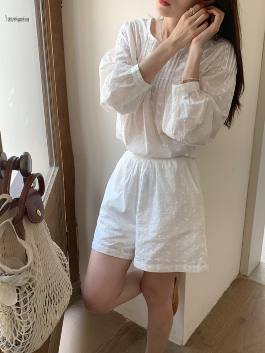 【F60298】韓國慵懶風氣質寬鬆格子襯衫+短褲 套裝250401