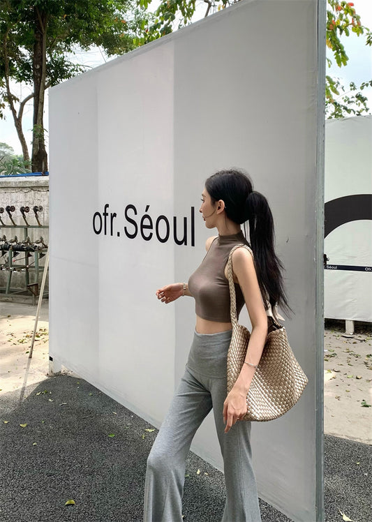 【F60327】實拍美式舒適微喇叭超顯瘦長褲+含胸墊背心 套裝250408