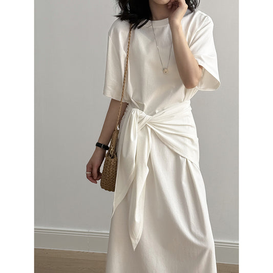 【Y82218】實拍舒舒服服簡約圓領短袖連衣裙+披肩250320