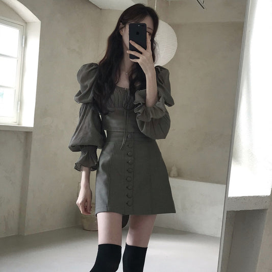【F01222】早春韓國法式方領上衣+高腰a字裙(分開下單)250113