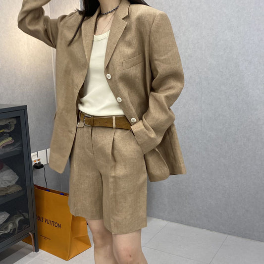 【F01211】實拍早春長袖西服外套+斜口袋設計休閒短褲(分開下單)250113
