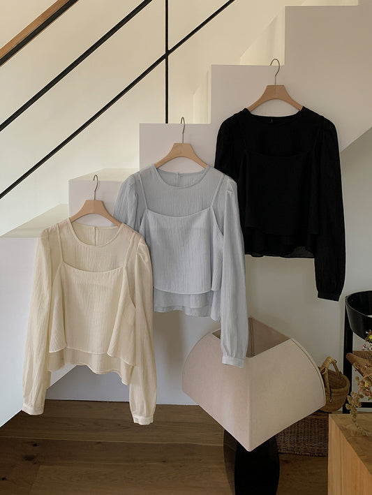 【F01216】韓國微透肌里雪紡吊帶+雪紡長袖上衣 兩件套250113