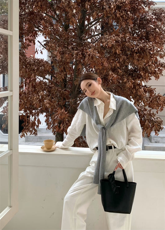 【F01231】實拍時髦復古針織披肩+百搭襯衫+高腰牛仔褲(分開下單)250113