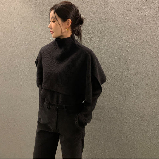 【F01121】韓國秋冬圓領針織+針織斗篷 2件套250106