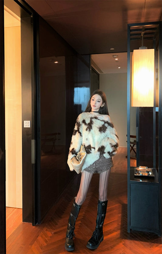 【F01236】實拍優雅洋氣設計感慵懶露肩毛毛毛衣+重工亮片毛呢短褲(分開下單)250113