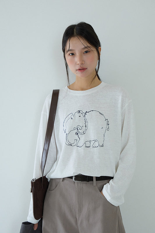 【LD3186】實拍秋冬文青大象舒適棉長袖T恤250922