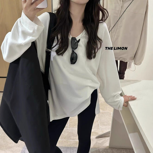 【L9262】實拍檸檬秋季雲朵絨側開叉寬鬆顯瘦長袖T恤250930