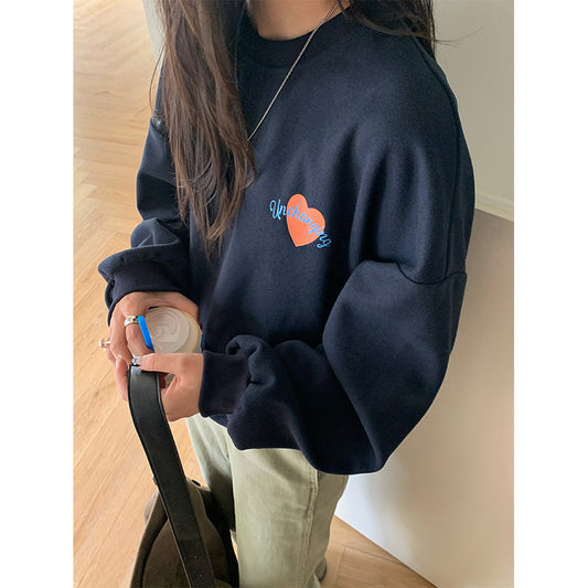 【H5433】實拍韓系愛心印花圓領長袖衞衣250916
