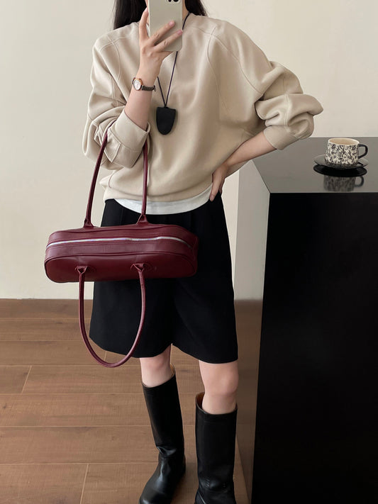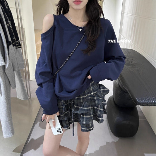 【H5427】實拍簡約慵懶捲邊露肩衞衣250916