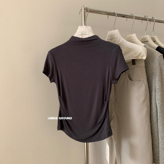 【L2182】實拍IMISS早秋簡約半高領短袖T恤250930