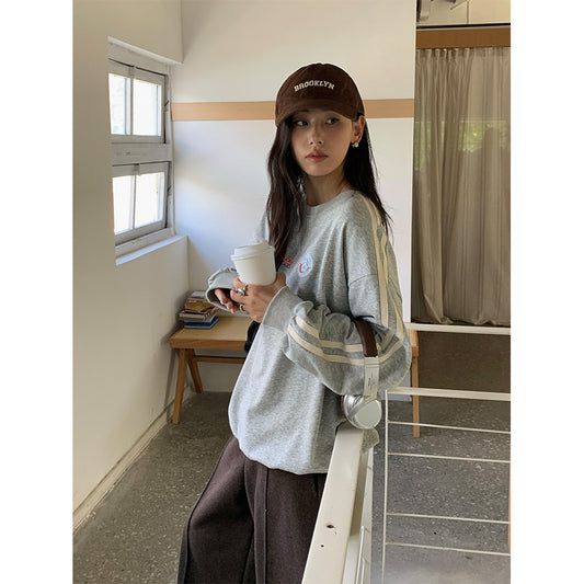 【H5448】實拍運動兩條槓印花長袖衞衣250923