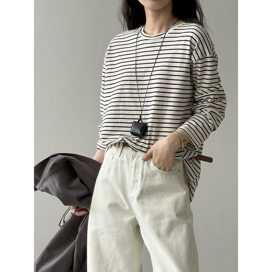 【Y716】實拍韓系黑白條紋純棉長袖T恤250918