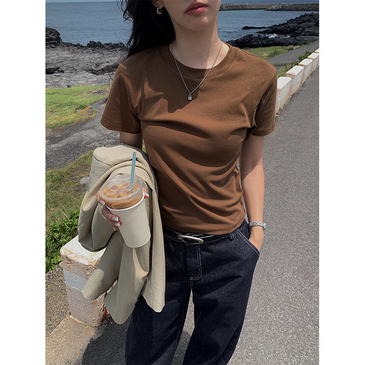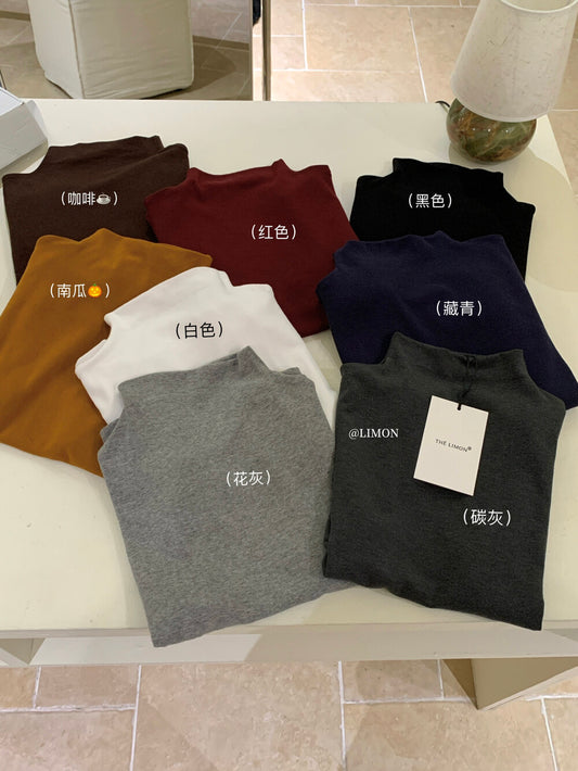 【L1126】實拍秋季簡約超彈顯瘦半高領短袖T恤250901