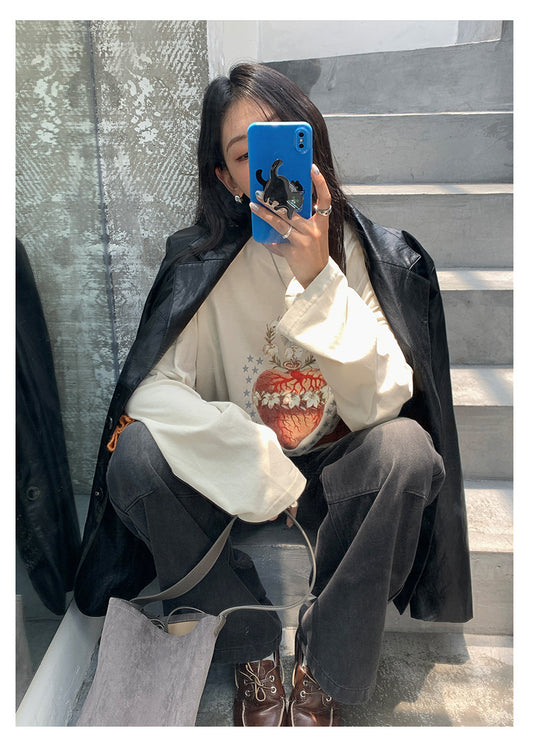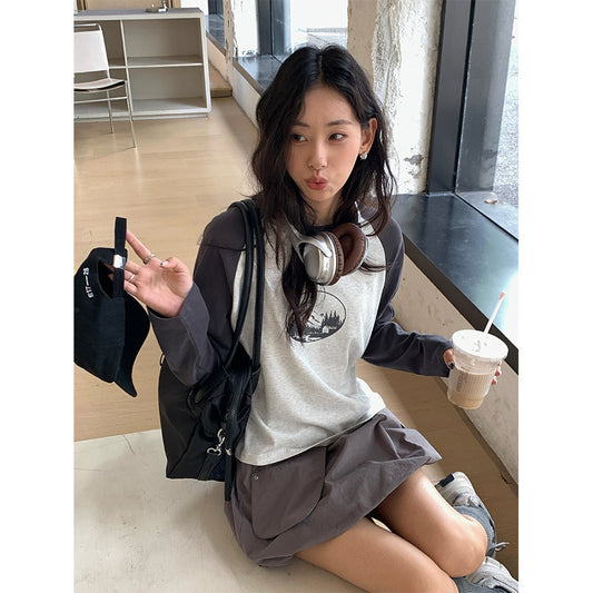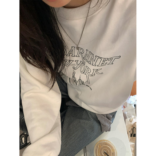 【H5397】實拍韓系甜美少女寬鬆長袖T恤250902