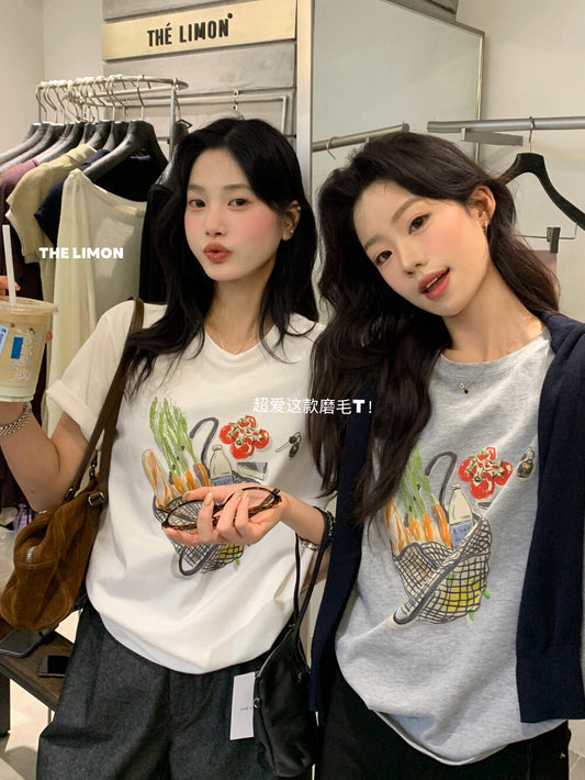 【L9061】實拍檸檬家印花設計感寬鬆棉質短袖T恤250901