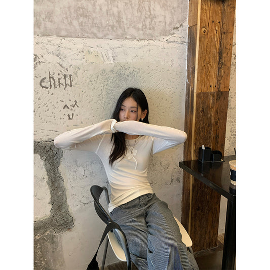 【H5410】實拍早秋天絲混紡花朵刺繡長袖T恤250909
