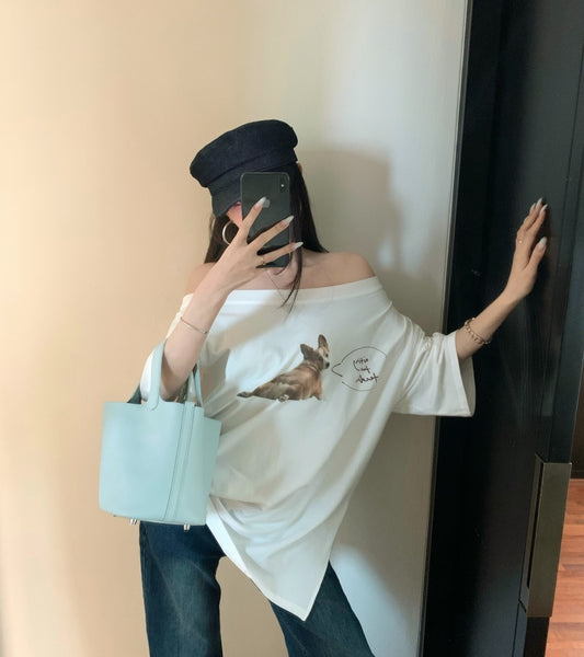 【H5321】實拍夏天寬鬆露肩短袖T恤250617
