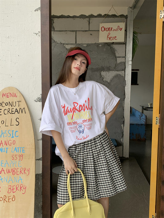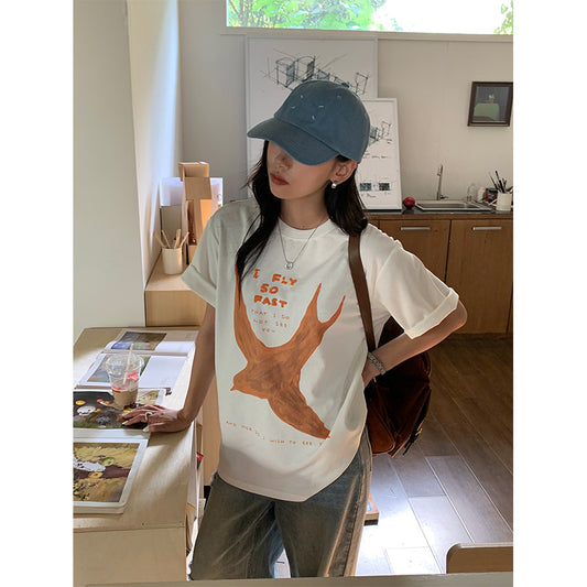 【F60480】實拍韓系寬鬆印花短袖T恤250616