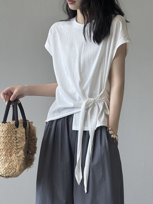 【Y82527】實拍韓系氣質綁帶收腰T恤250619