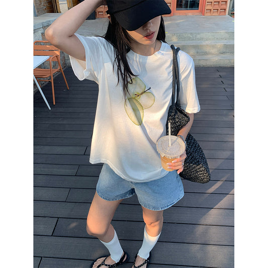 【H5308】 實拍韓系夏天蘋果印花簡約短袖T恤250610