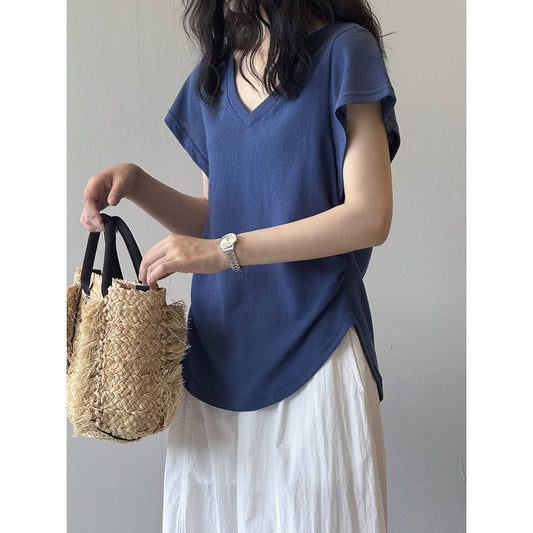 【Y82530】實拍小飛袖雪花棉收腰T恤250619