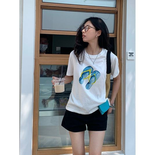 【H5332】實拍簡約夏日印花短袖T恤250624
