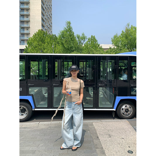 【H5298】實拍韓版斜肩小眾設計款短袖T恤250603