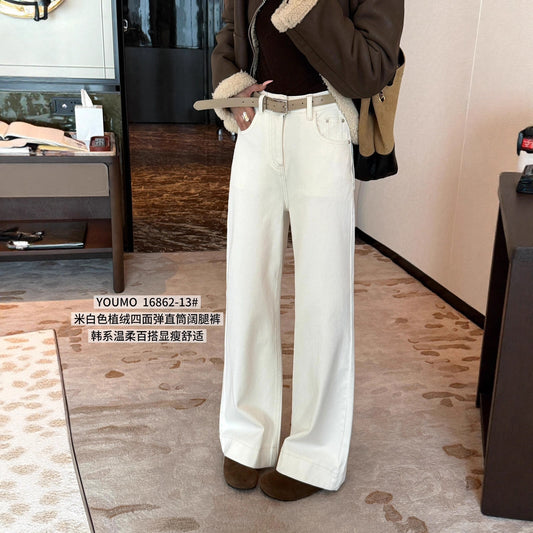 【L1686212】實拍S~XL超彈顯瘦植絨直筒高腰牛仔褲+腰帶251208