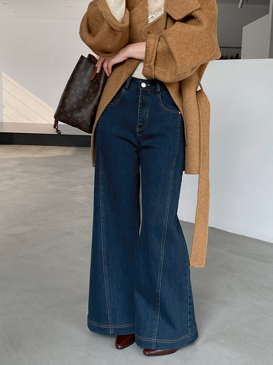 【cimz6398】經典深藍加絨加厚顯瘦喇叭牛仔褲260102