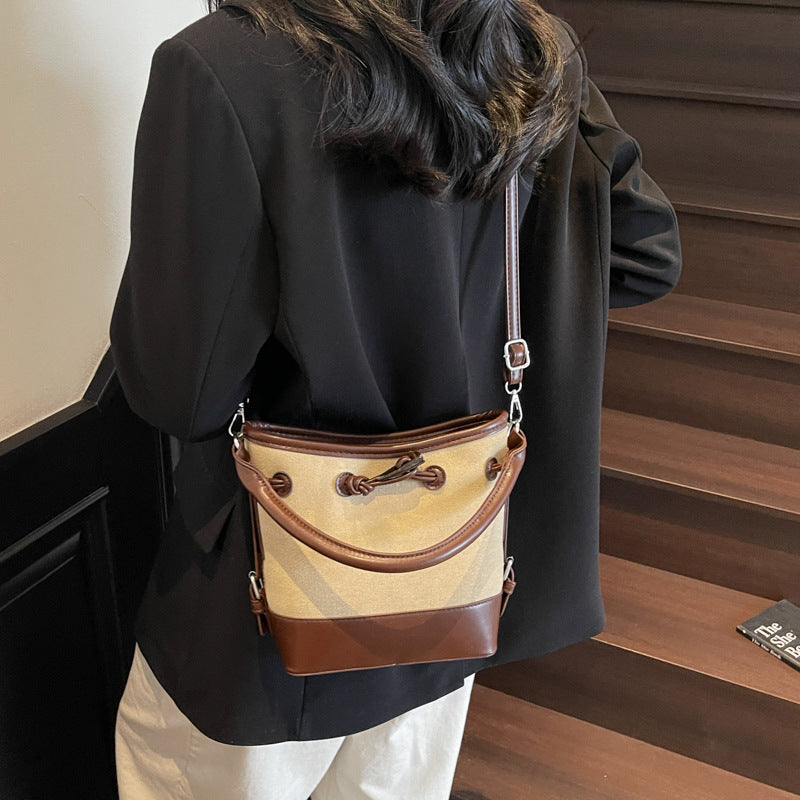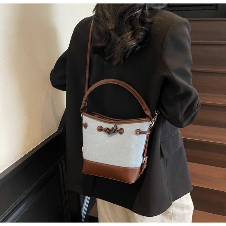 【B7801】夏季撞色帆布手提小包|簡約水桶包斜背兩用250514