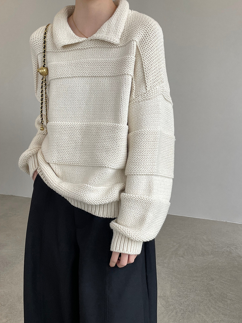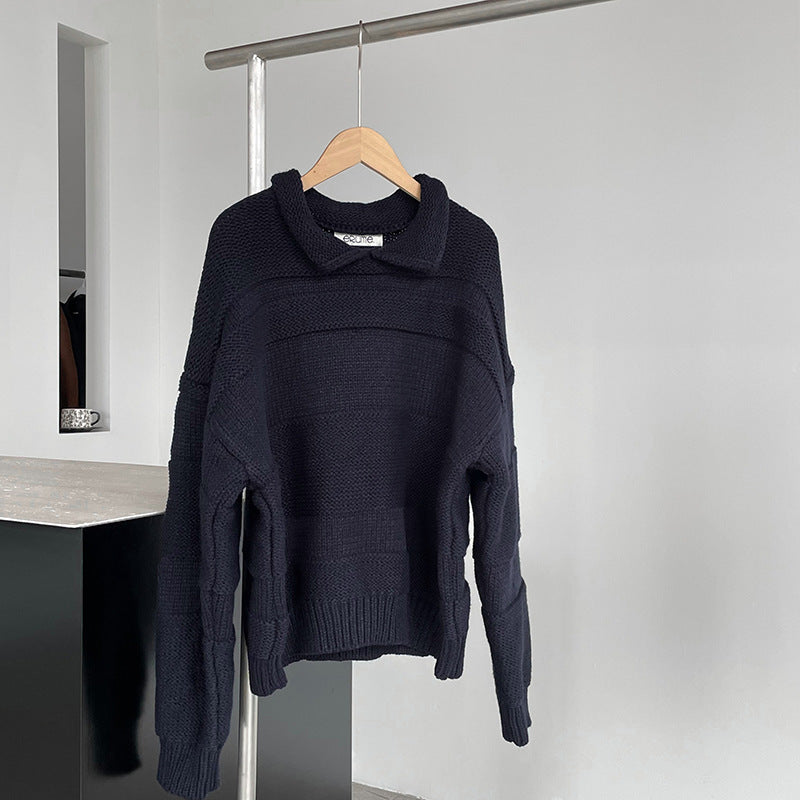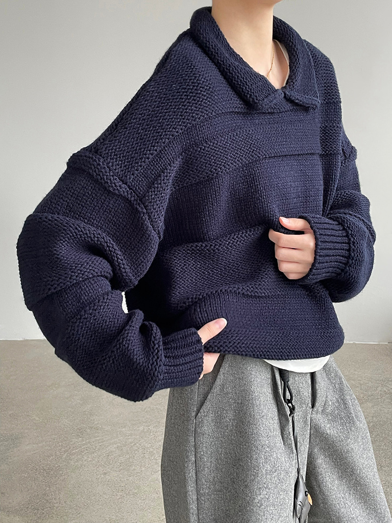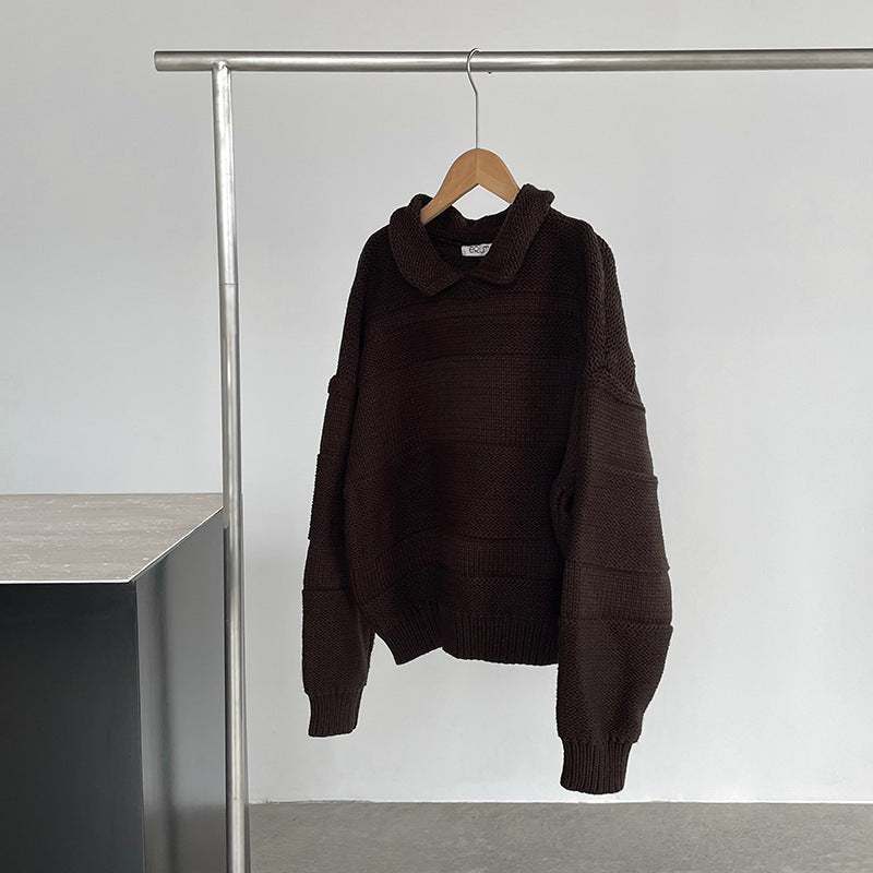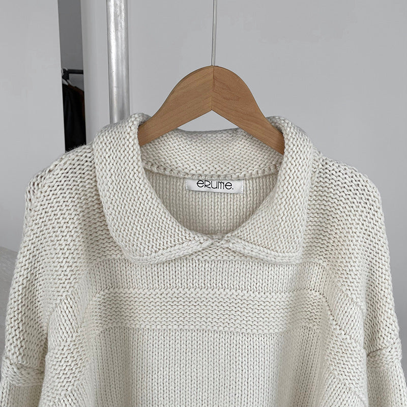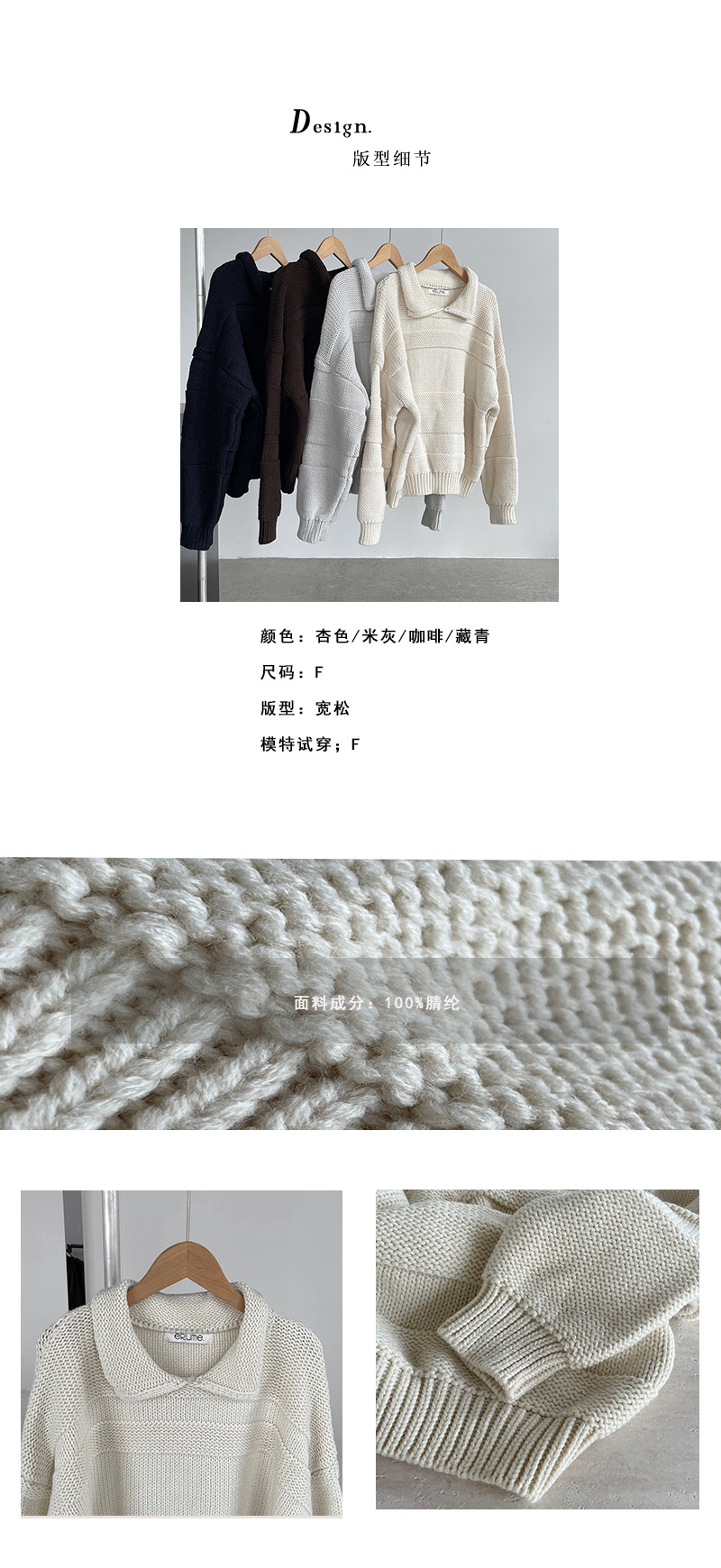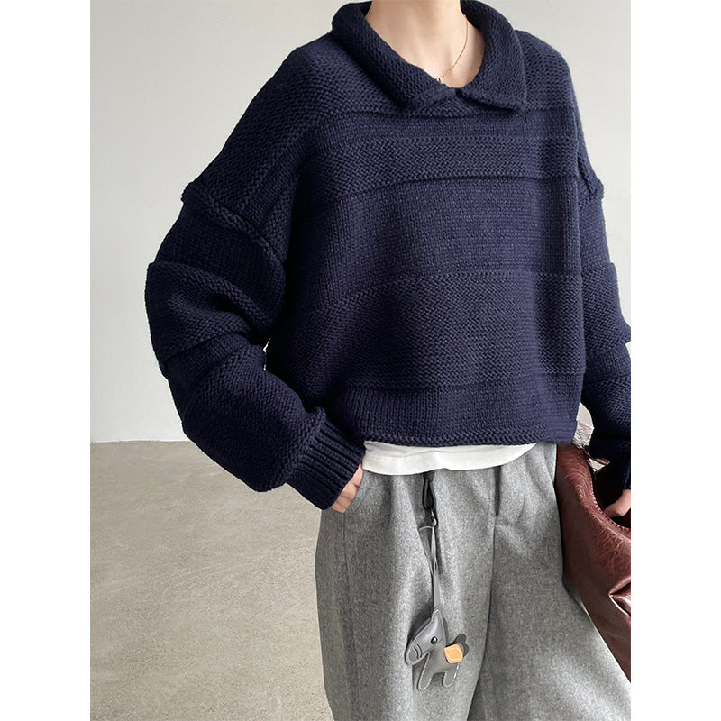 【cim067】實拍秋冬復古粗線polo領慵懶針織毛衣251002