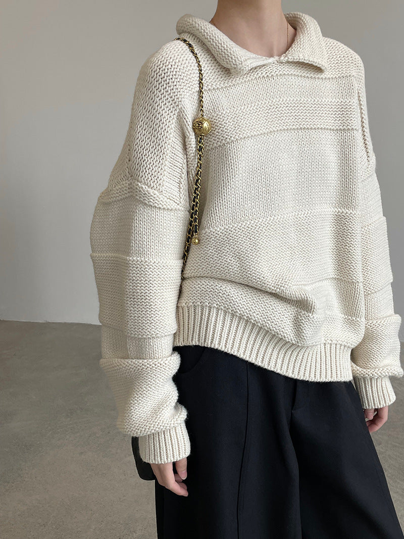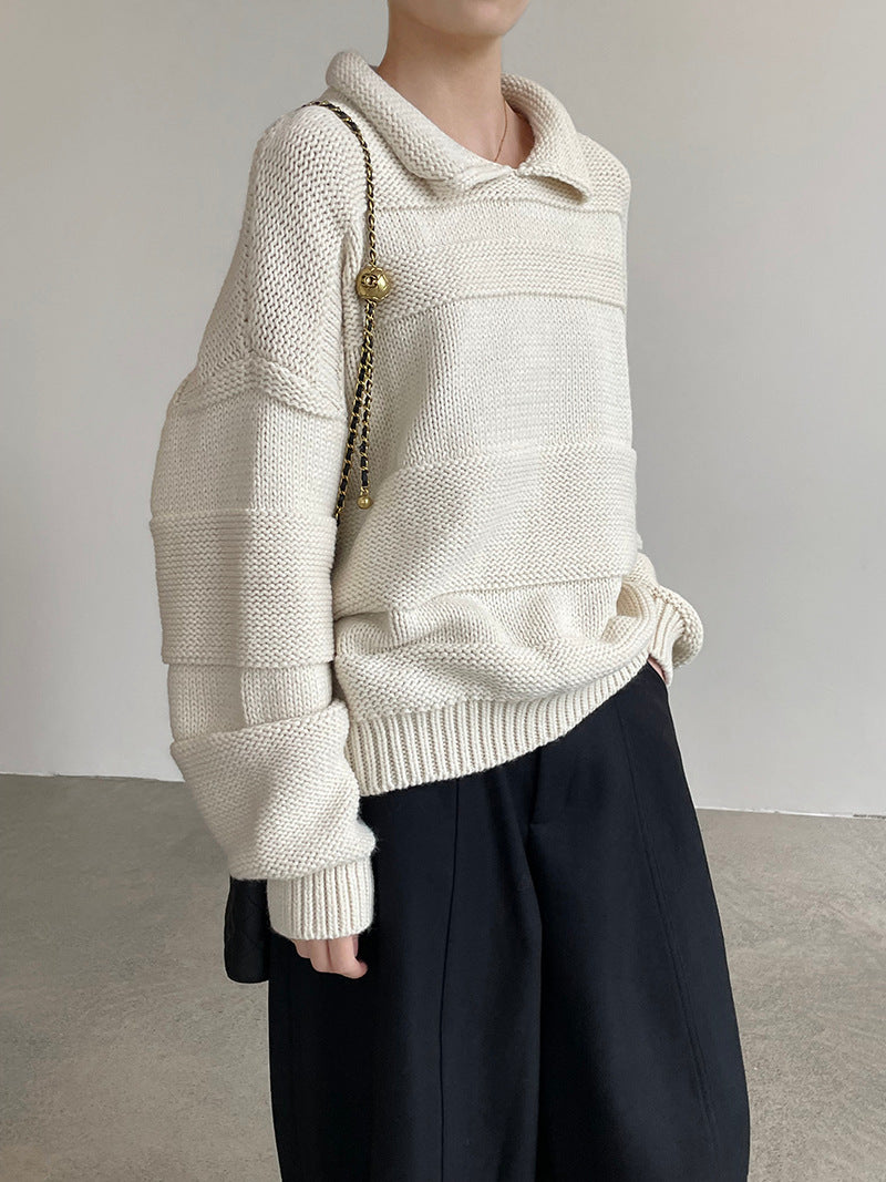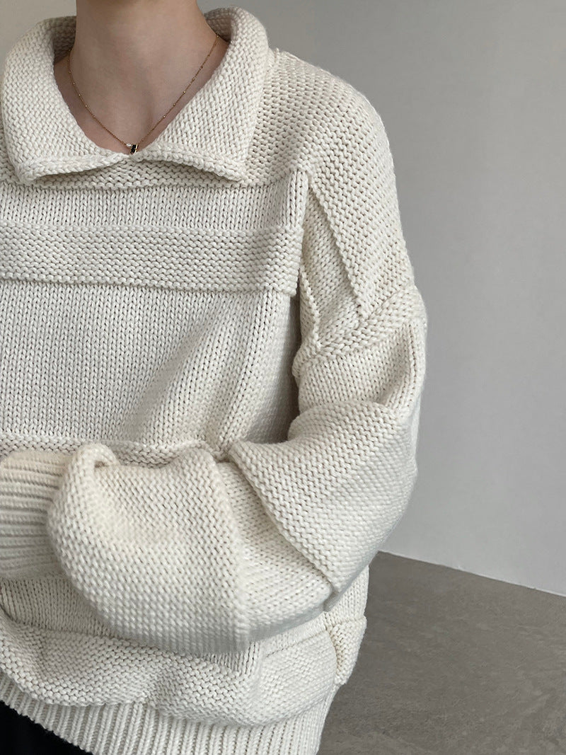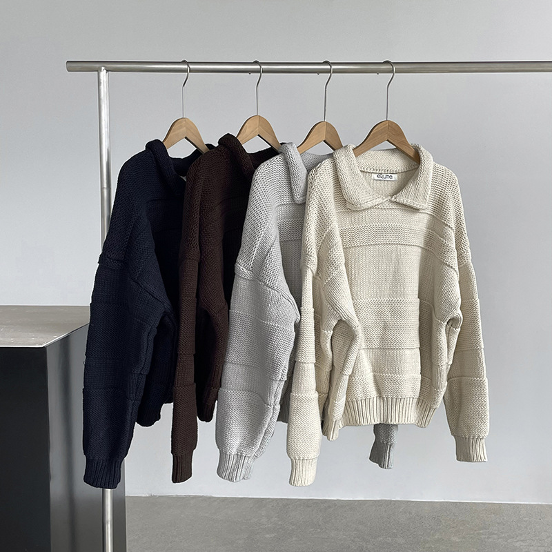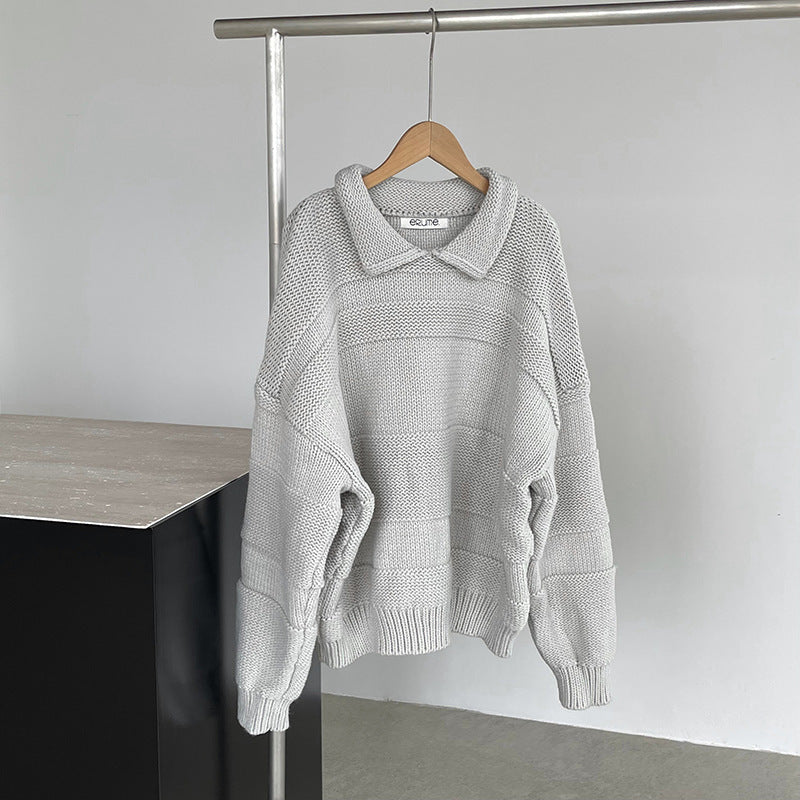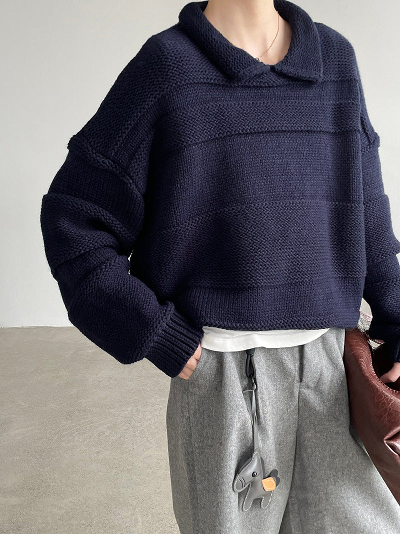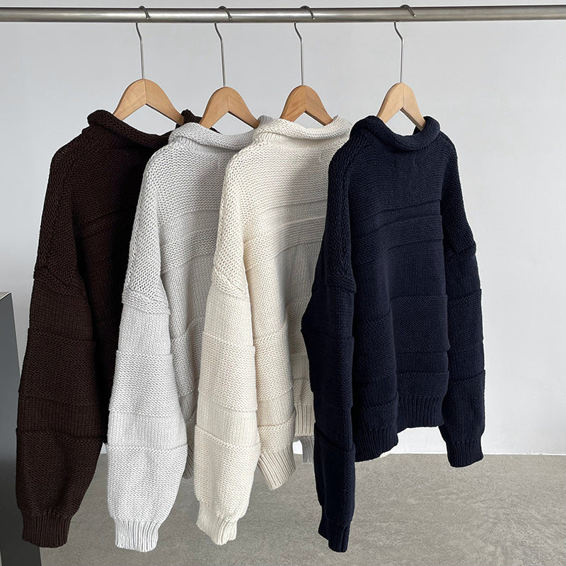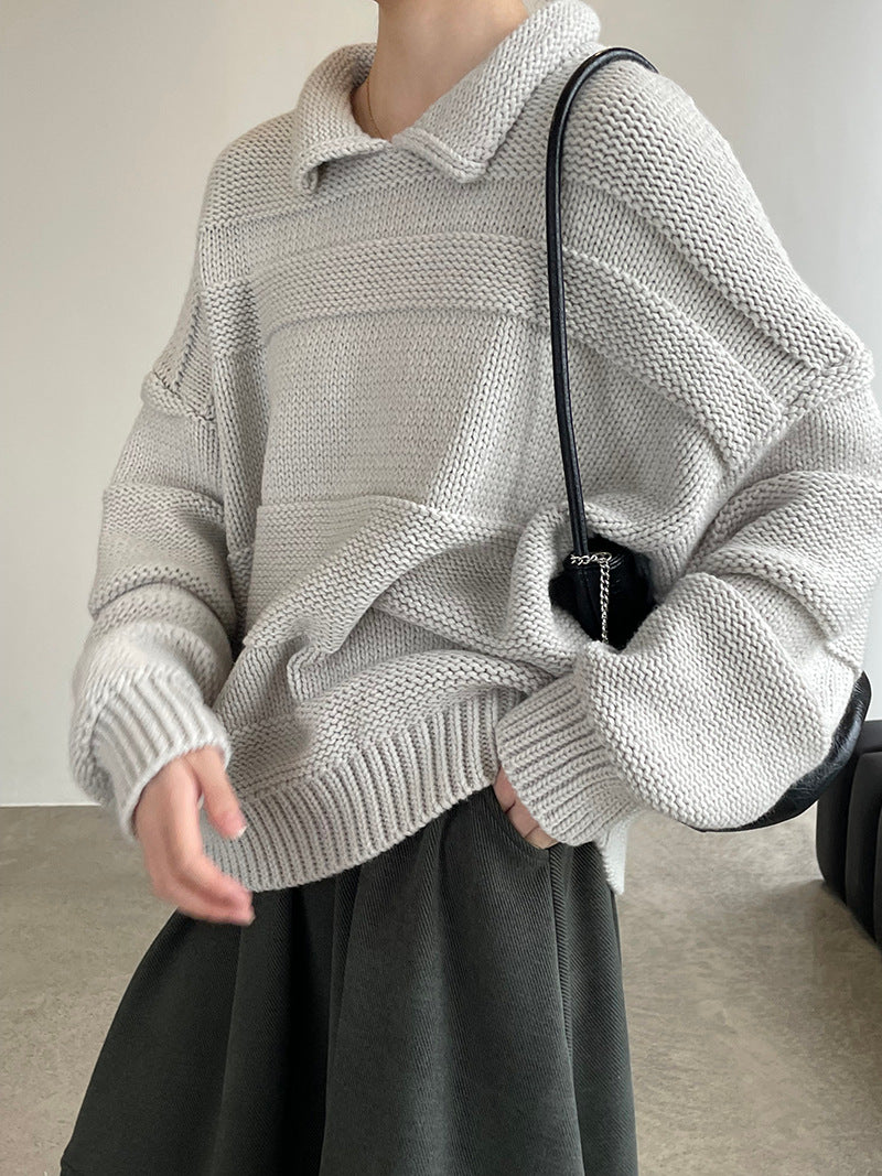 【cim067】實拍秋冬復古粗線polo領慵懶針織毛衣251002