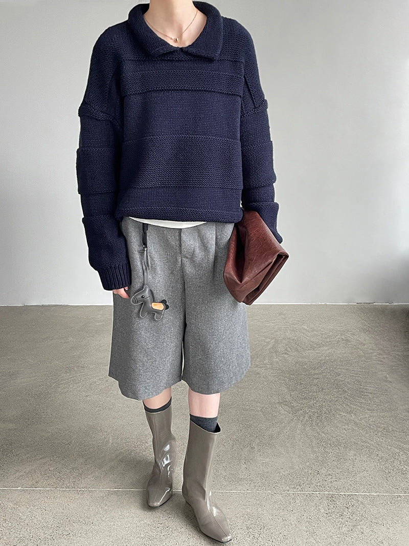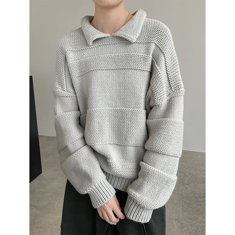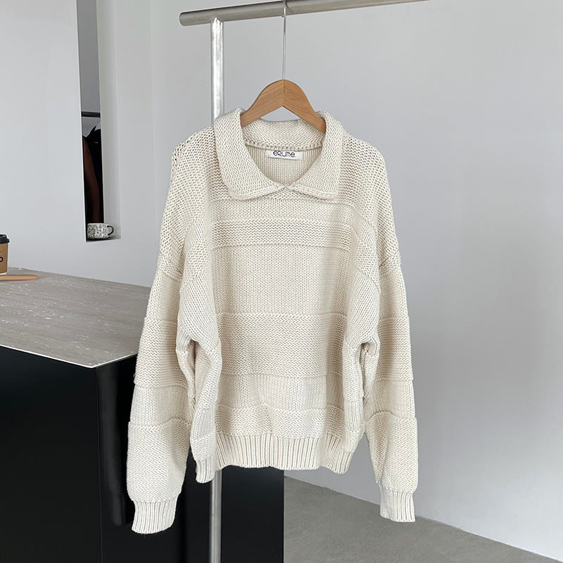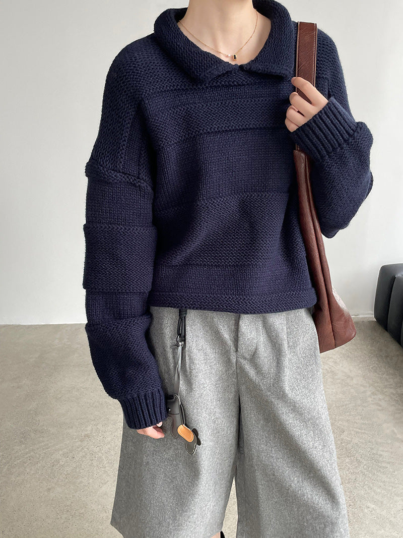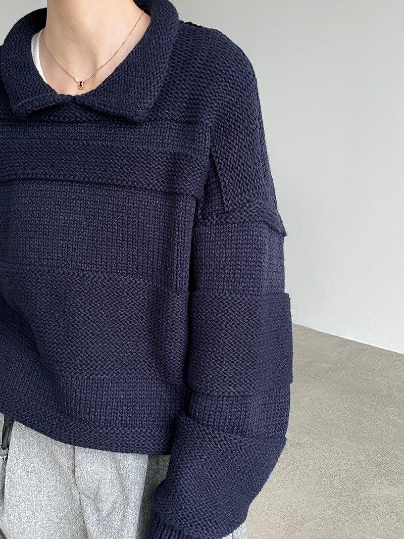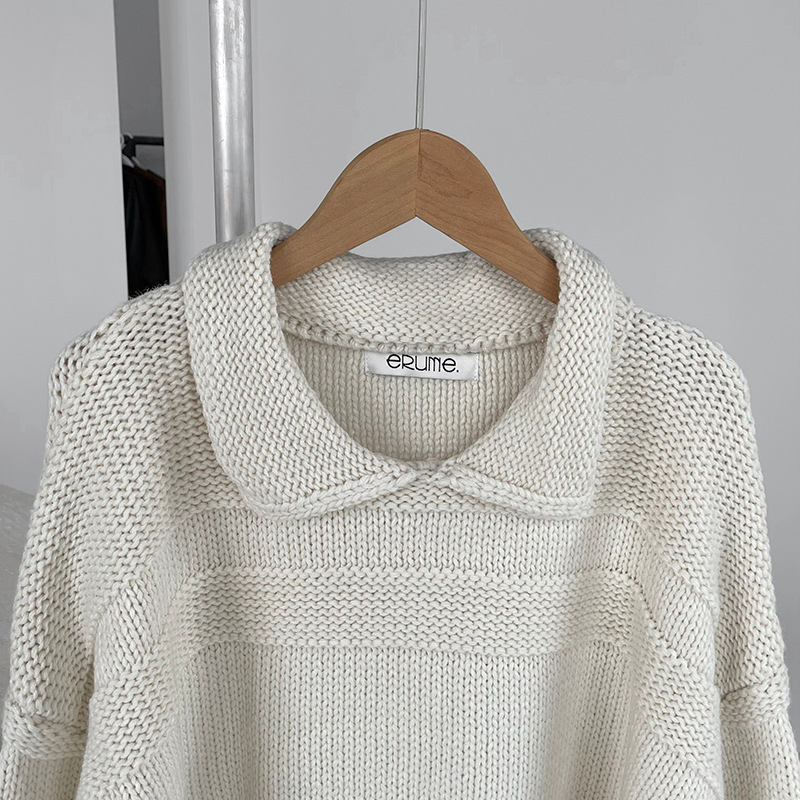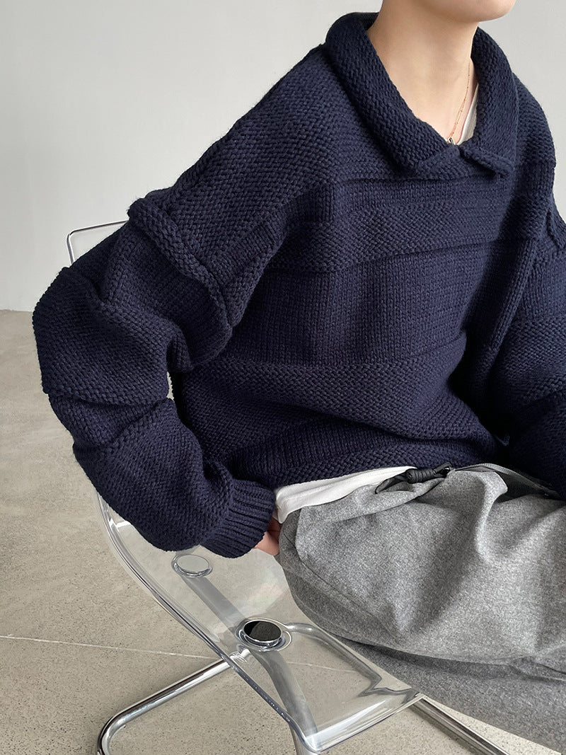 【cim067】實拍秋冬復古粗線polo領慵懶針織毛衣251002