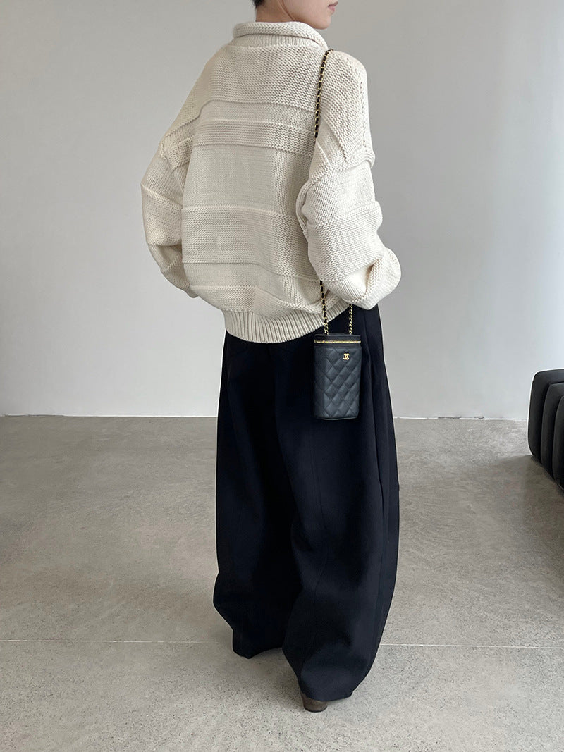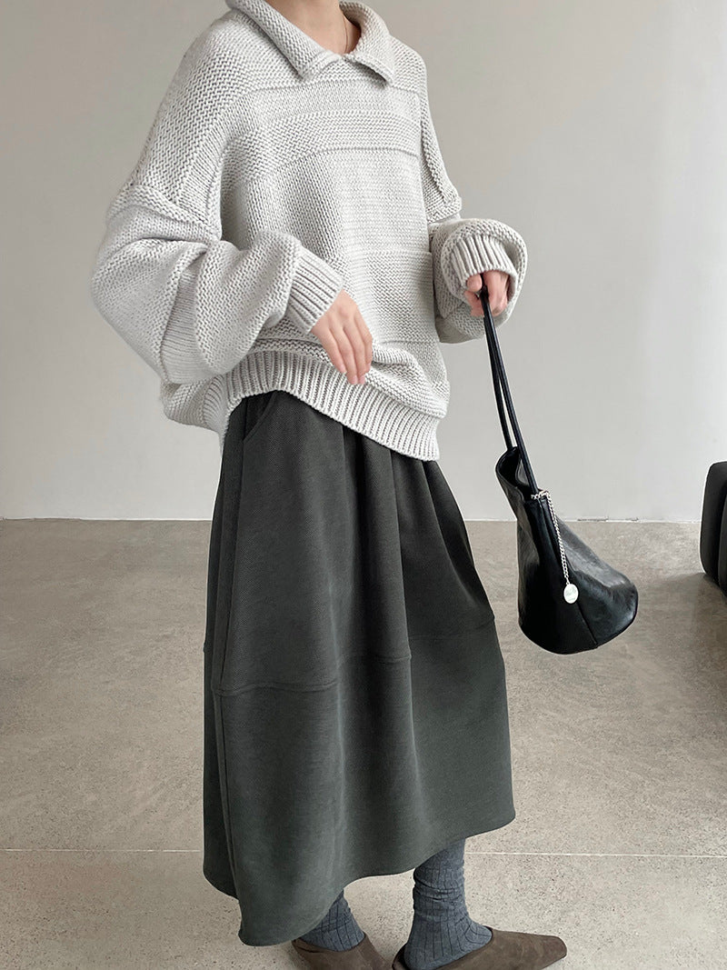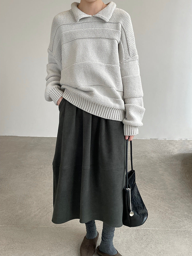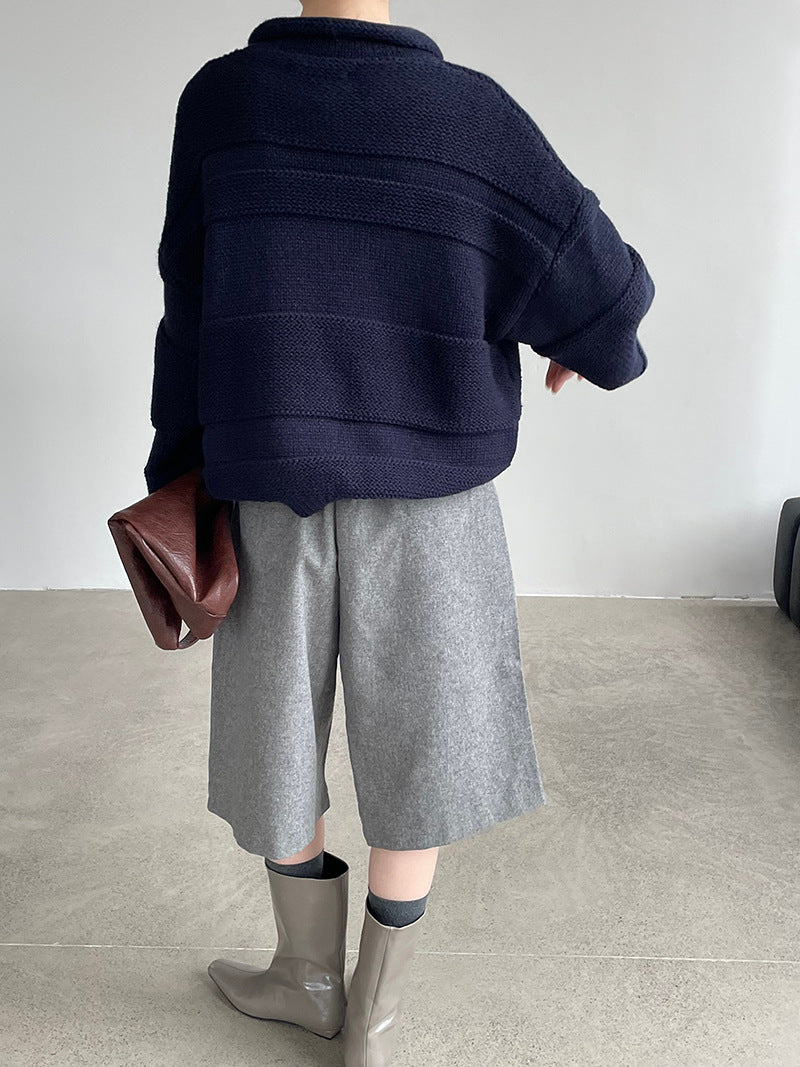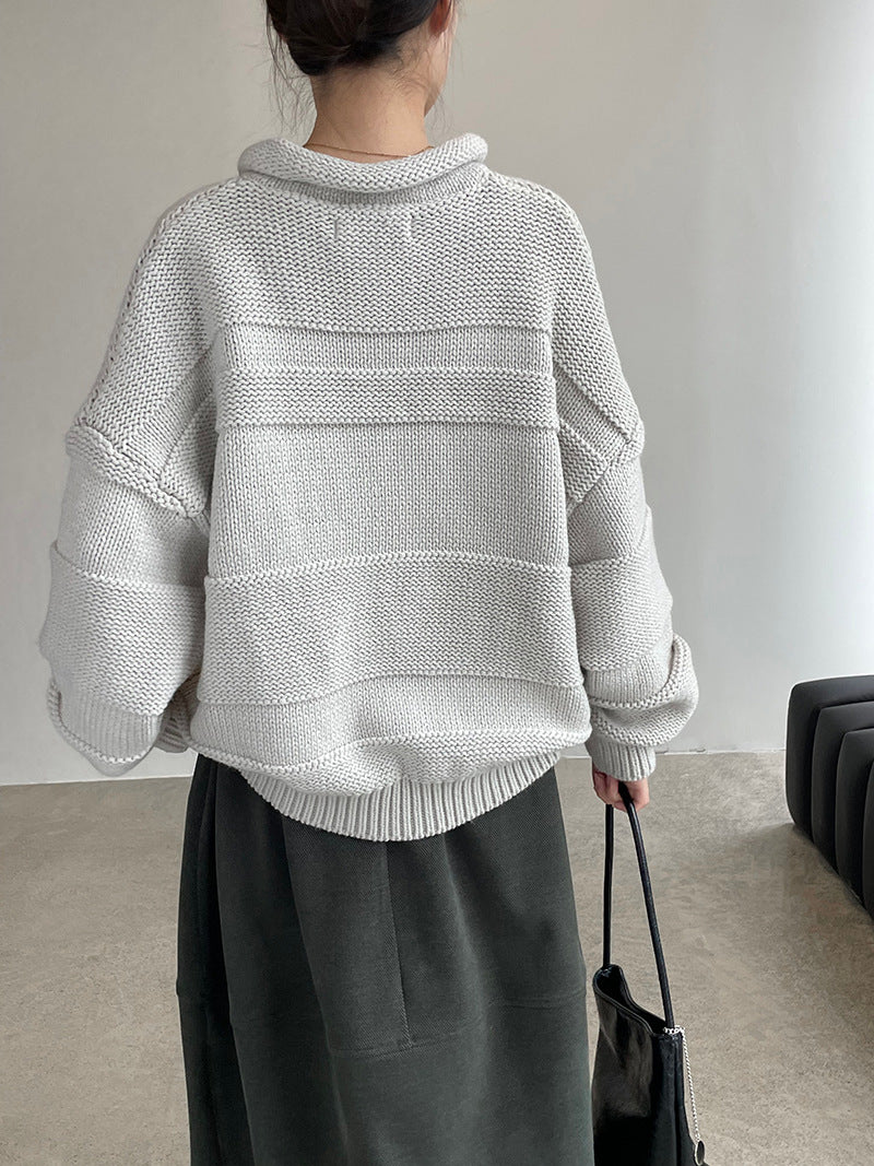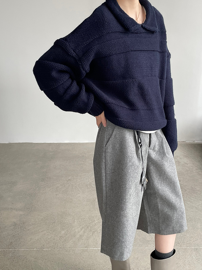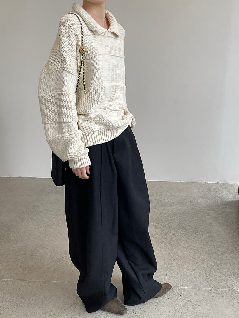 【cim067】實拍秋冬復古粗線polo領慵懶針織毛衣251002