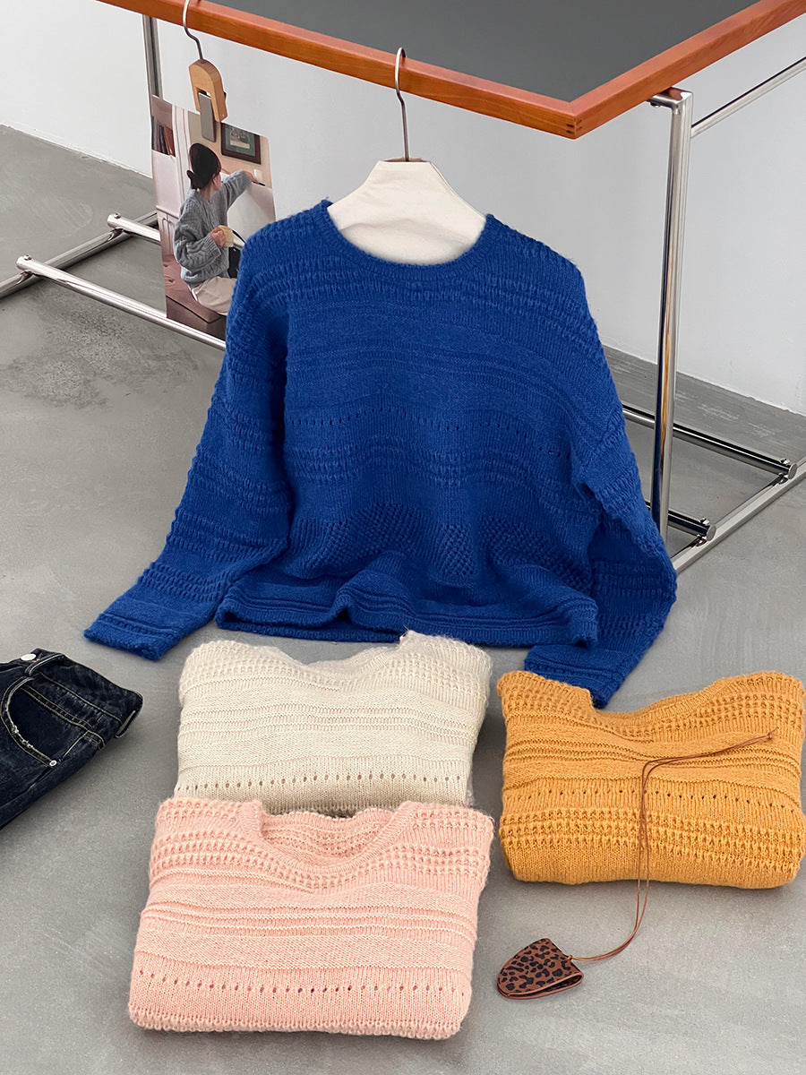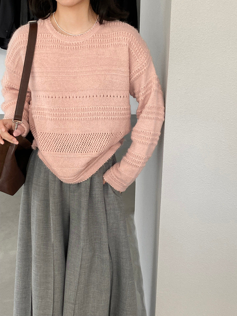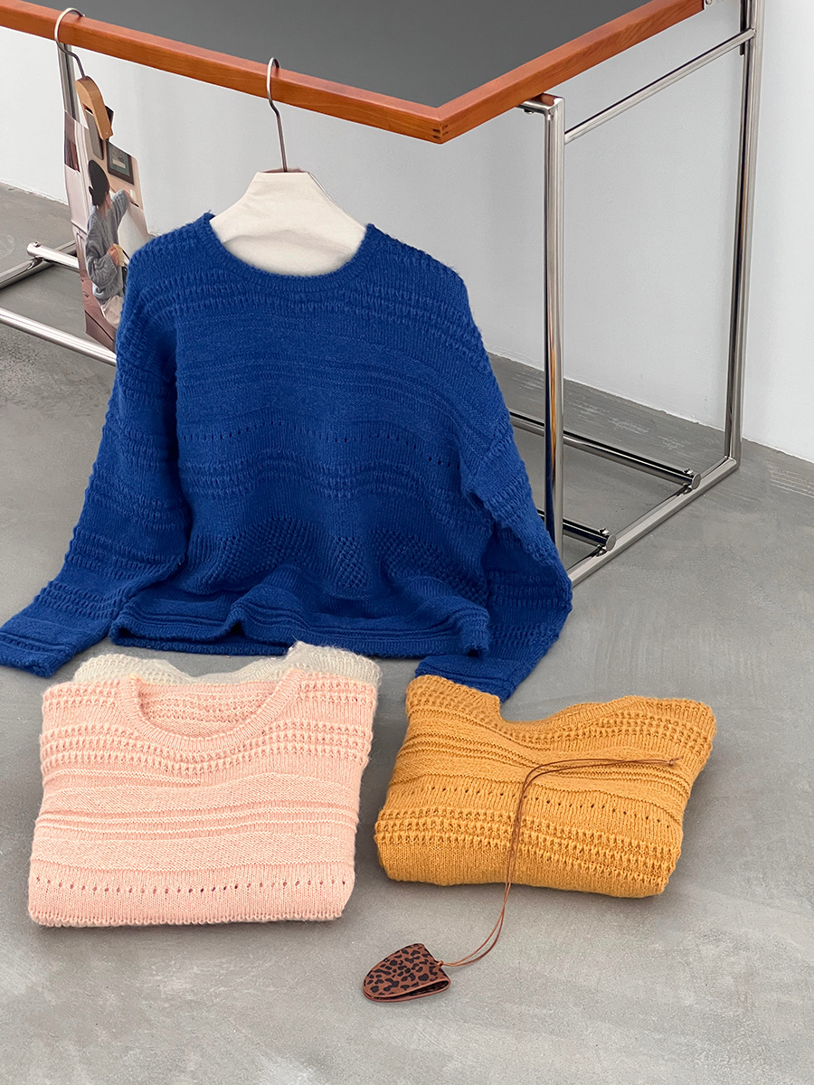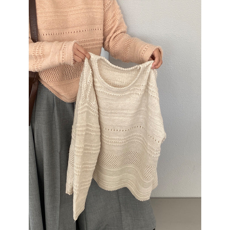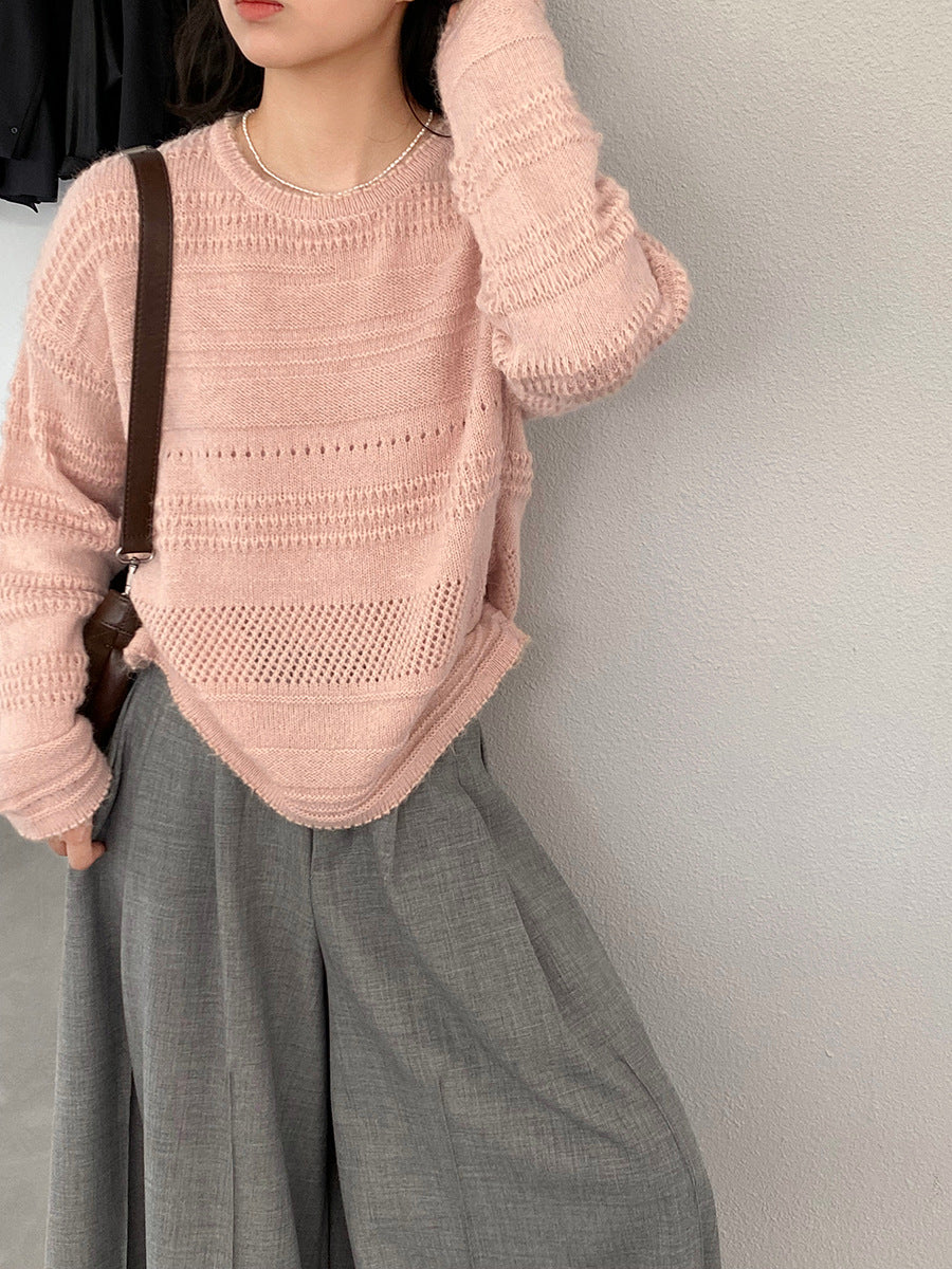 【cim1293】實拍氣質鏤空提花寬鬆慵懶針織衫(15羊毛)251030