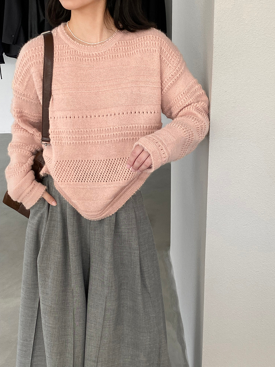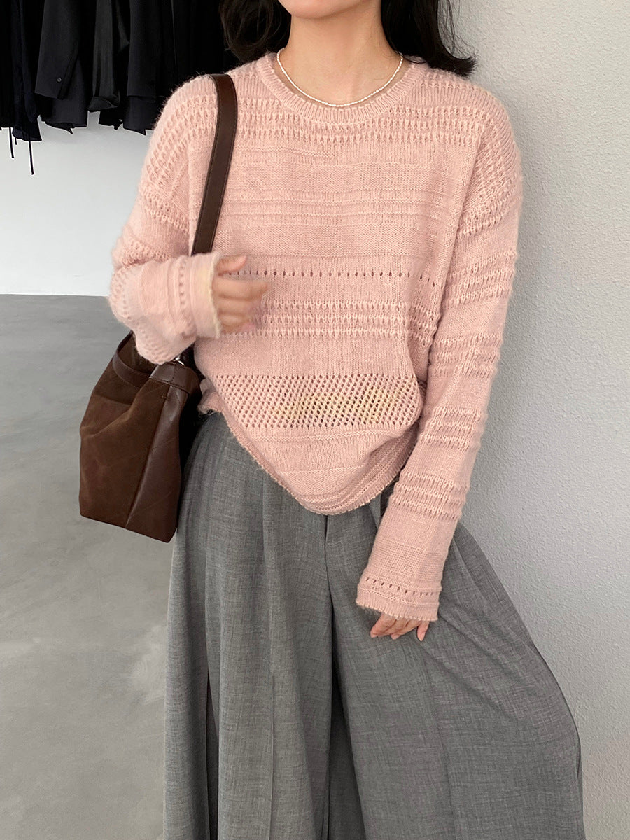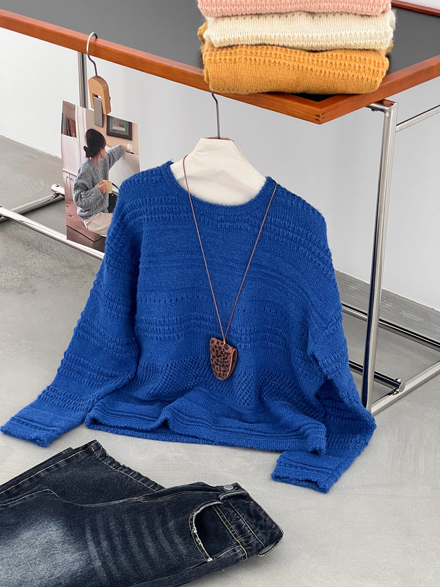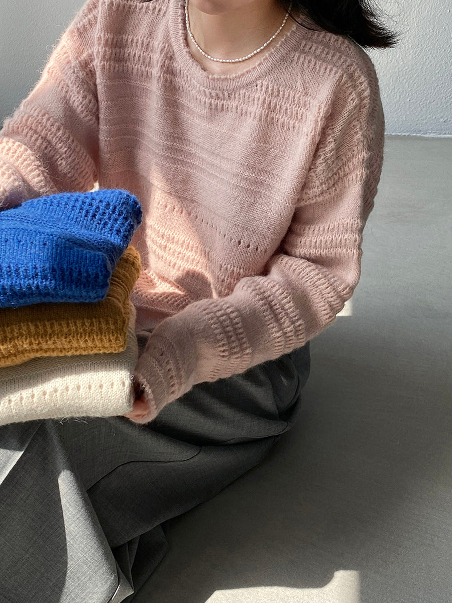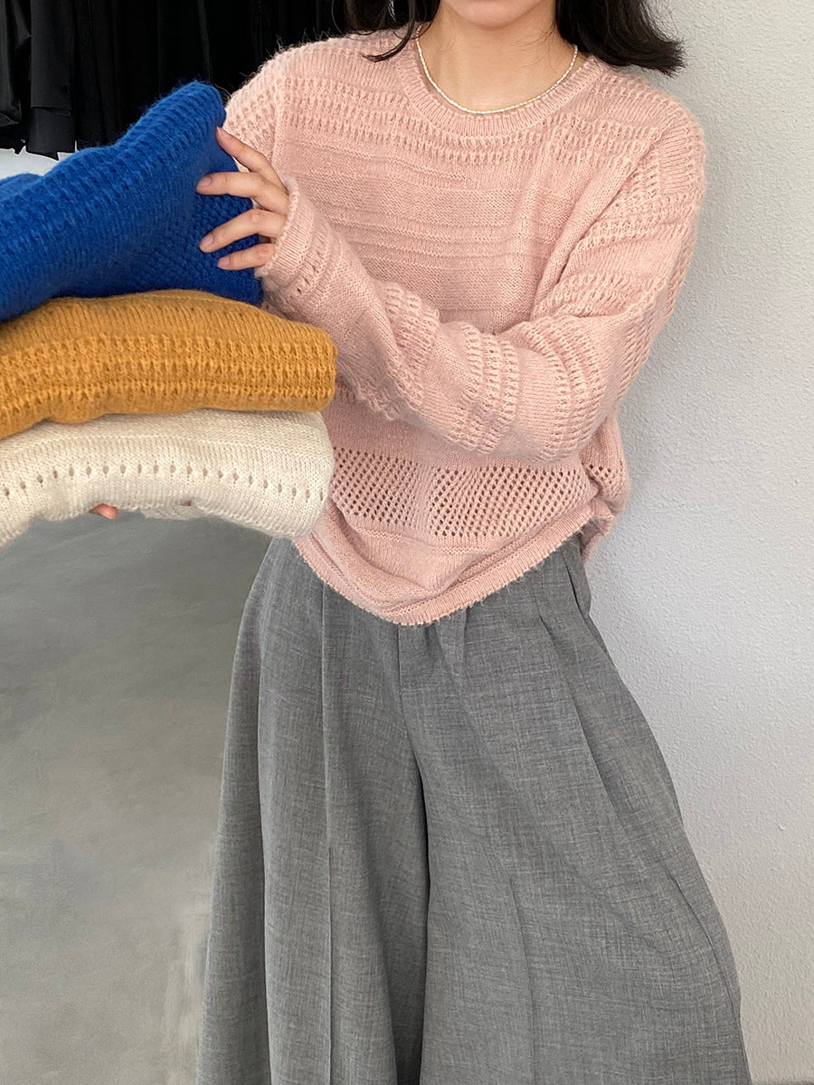【cim1293】實拍氣質鏤空提花寬鬆慵懶針織衫(15羊毛)251030