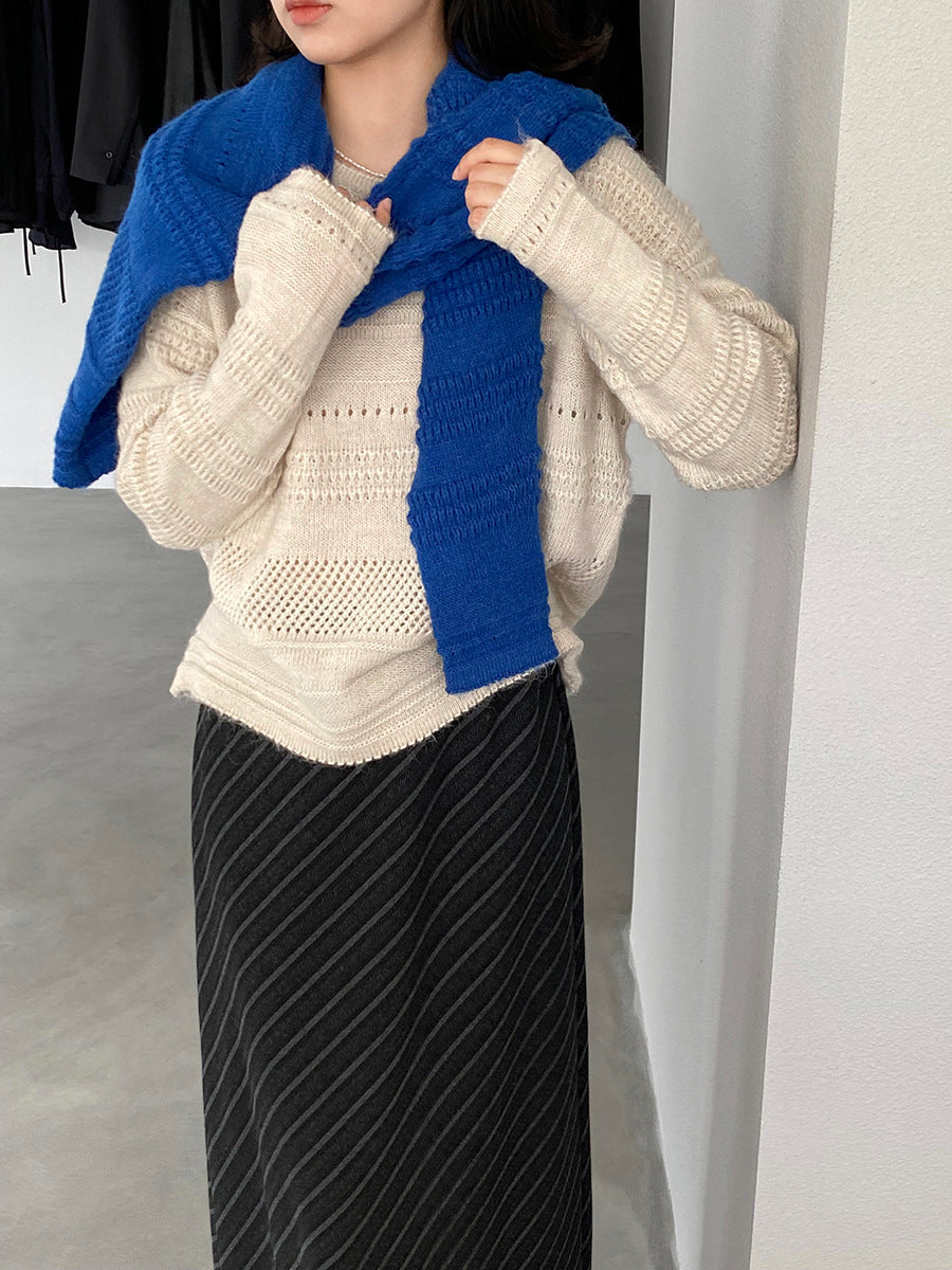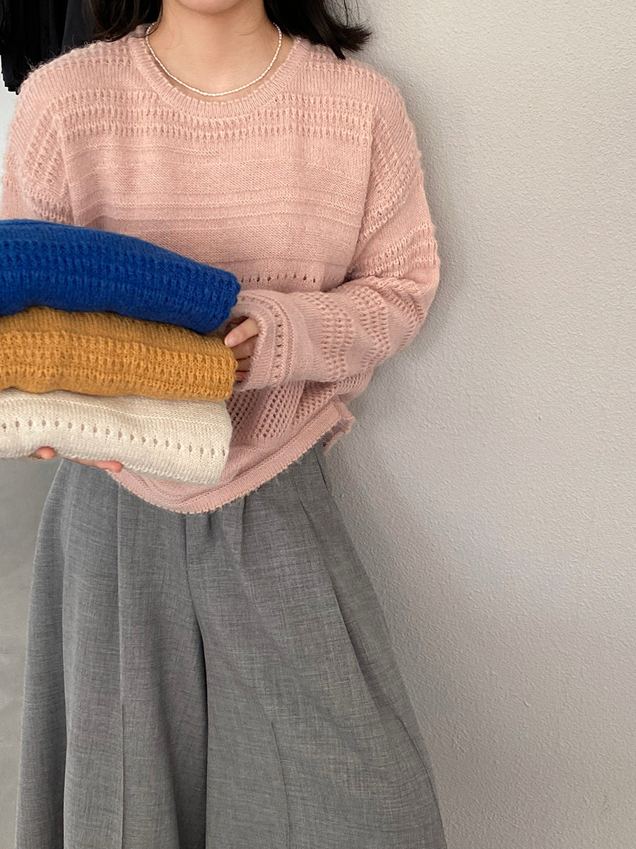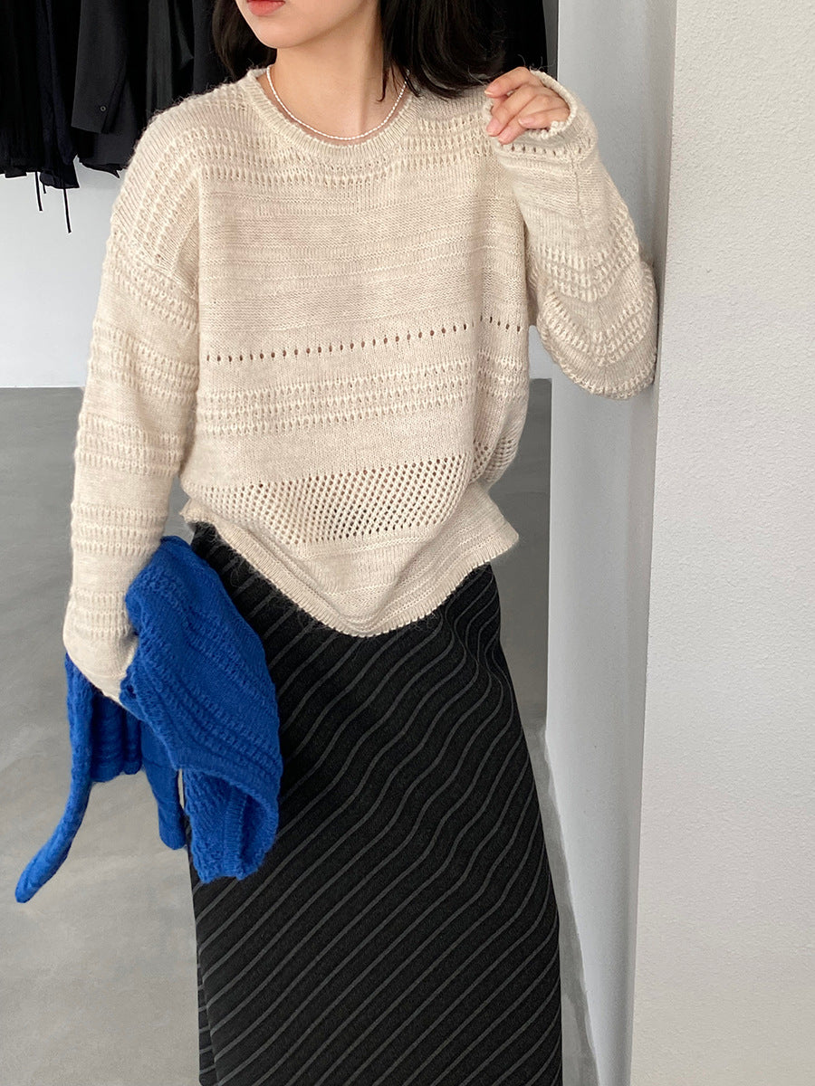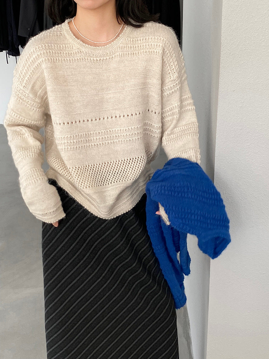 【cim1293】實拍氣質鏤空提花寬鬆慵懶針織衫(15羊毛)251030