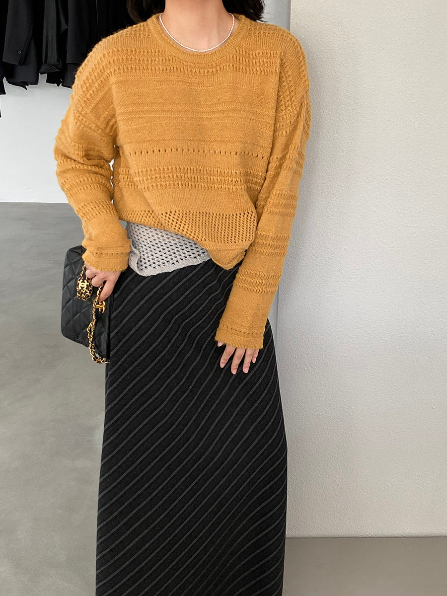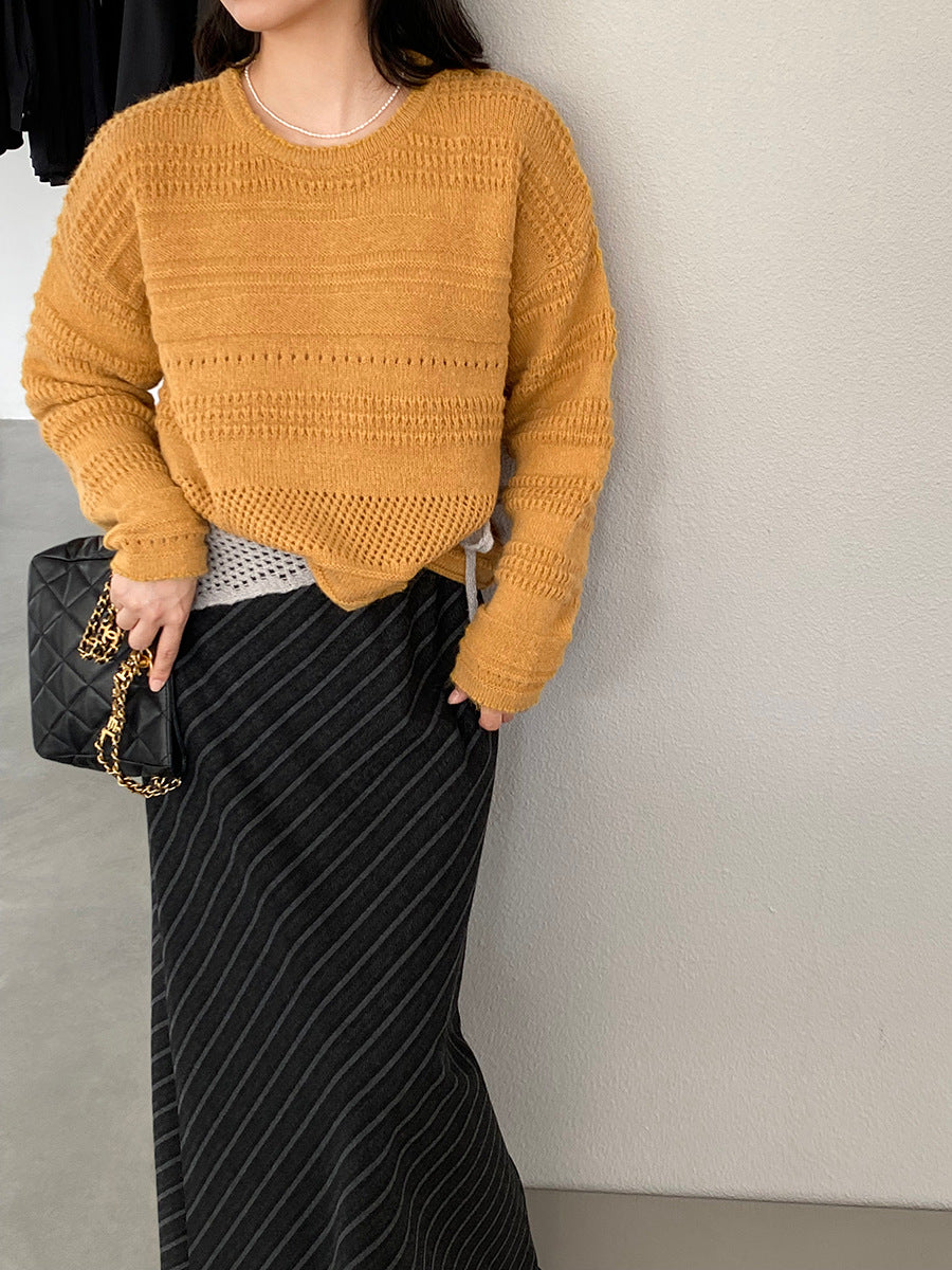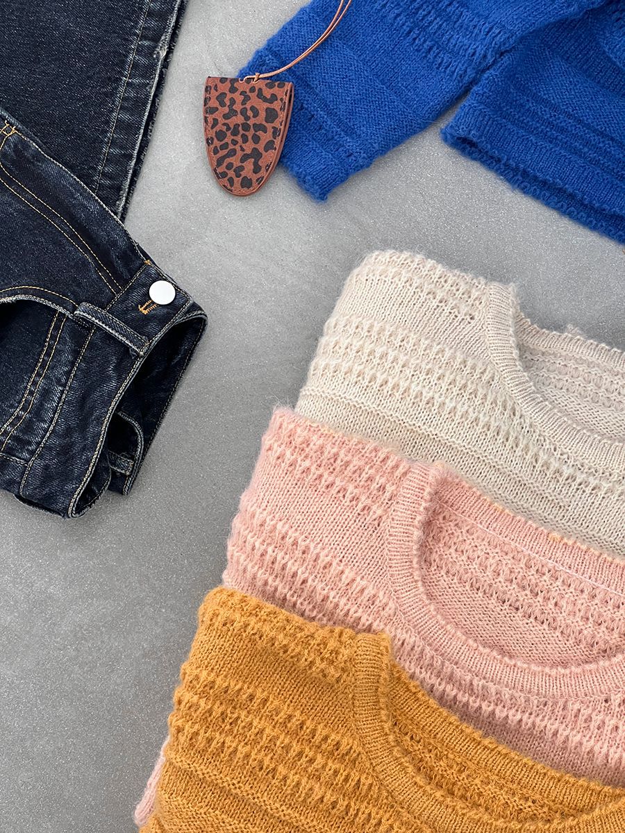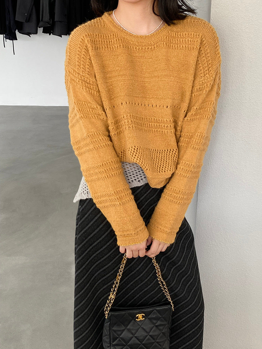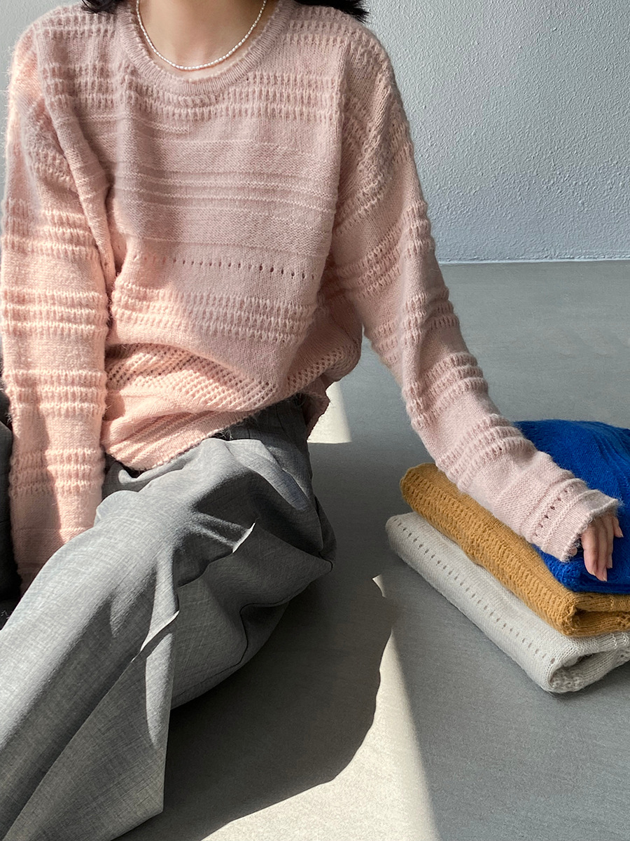 【cim1293】實拍氣質鏤空提花寬鬆慵懶針織衫(15羊毛)251030