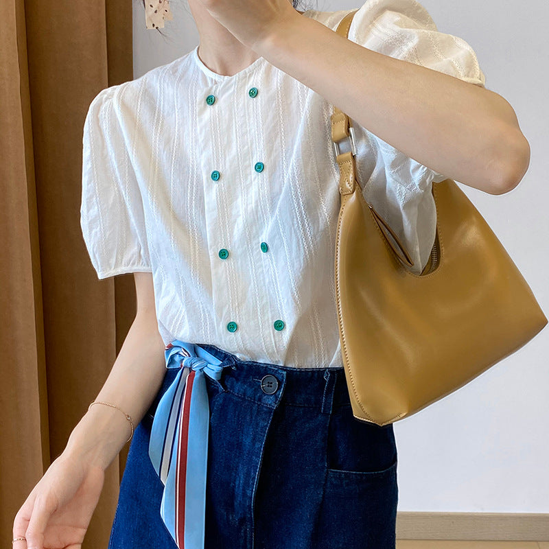 在台現貨【cim1955】實拍韓國夏天清新撞色雙排扣襯衫